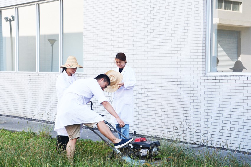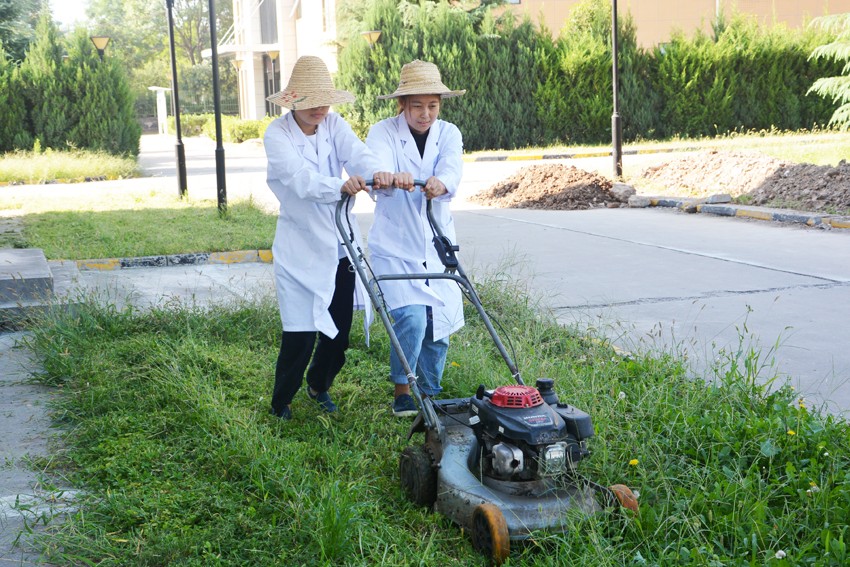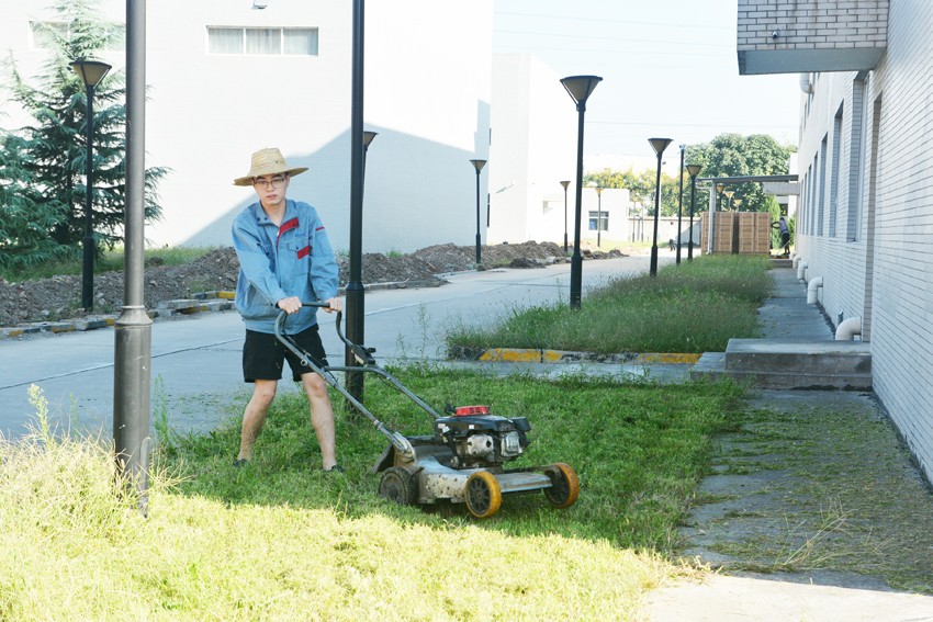 行政部所有员工率先对园区的道路,
